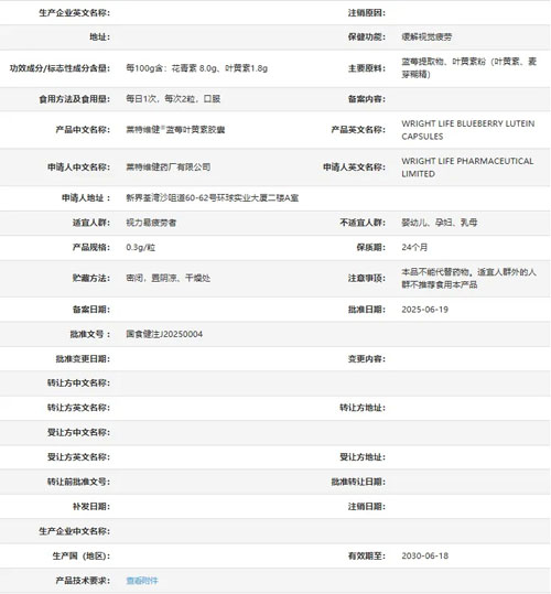 莱特维健®蓝莓叶黄素胶囊 国食健注J20250004