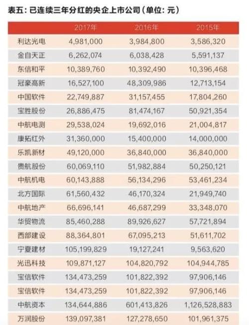 其中也有连续3年盈利而不分红的,比如泰山石油有研新材长春一东、中船高科等少数几家。由于多数企业的2017年分红方案尚未完全公布,不排除这些企业在今年稍后分红的可能。