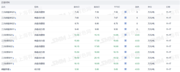 2.正极材料价格