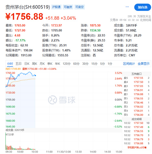 白酒股单边拉升,酒鬼酒冲高涨停。贵州茅台盘中涨超3%,舍得酒业、水井坊、古井贡酒涨幅居前。