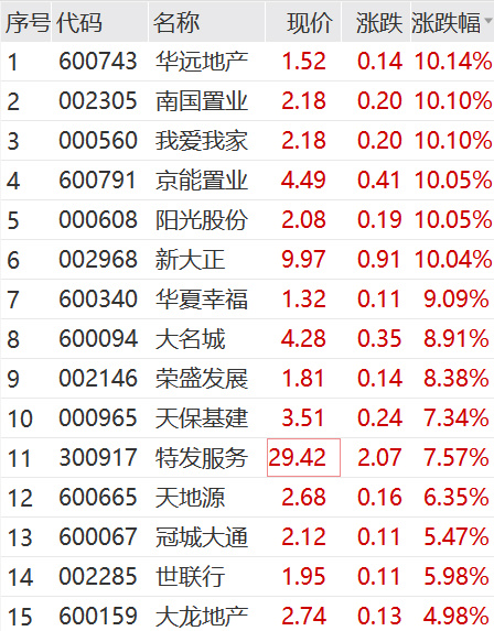近期房地产板块持续迎来利好消息,个股表现踊跃。5月6日上午,地产股开盘走高,南国置业五连板,华远地产、阳光股份、我爱我家等多股涨停。