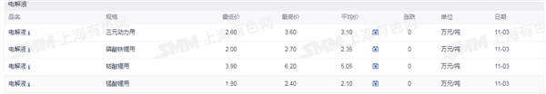证券之星新能源车行业周报:据上海有色网,本周五SMM磷酸铁价格为1.17-1.23万元/吨,均价1.20万元/吨,较上周五跌100元/吨。本周,磷酸铁价格下跌。因下游订单变数较大,磷酸铁月度谈单较谨慎,为获得市场份额,磷酸铁厂被迫让“利”出售。本周,原料价格稳定,企业生产成本稳定,相对销售价格,成本高企。原料端,磷酸铁按需生产,新产线集中在年底前调试完毕,市场供应量充足。需求方面,四季度需求惨淡,对磷酸铁的需求量有所减少。随着月度谈单的结束,散单的成交亦趋于平淡,预计,下周磷酸铁价格持稳。